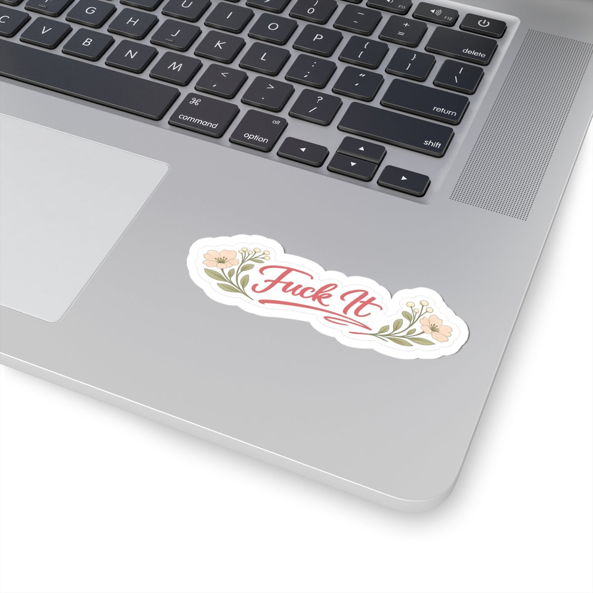 A cheeky, soft-hearted sticker that pairs bold language with gentle, vintage-inspired florals. The glossy kiss-cut vinyl shows off the warm, coral-red script while surrounding blossoms and sage-green leaves soften the message. Stick it on a laptop, journal, water bottle, or mirror to add a dash of rebellious humor to everyday corners. The thin white border gives a clean, finished look whether you choose the transparent or white background option. This is for someone who likes to keep things honest, laugh at life’s small frustrations, and decorate their space with personality.