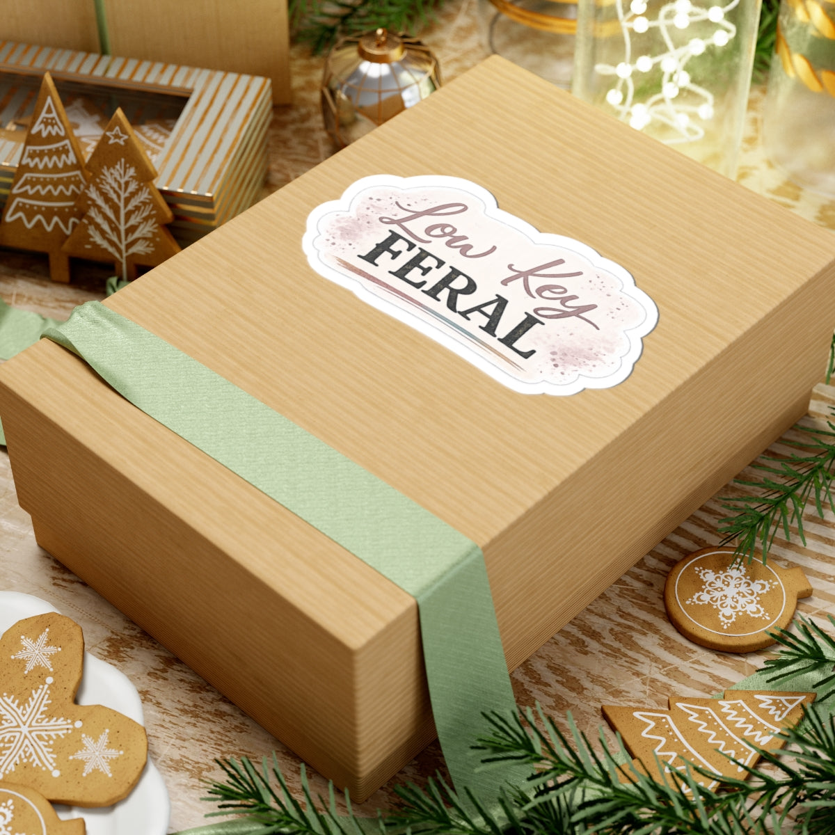A playful, slightly rebellious sticker that says it all without shouting. This glossy kiss-cut vinyl piece reads “Low Key FERAL” in a mix of soft script and bold type, backed by a muted watercolor wash and subtle speckle texture. It sits comfortably on laptops, journals, water bottles, or bedroom mirrors — adding a dash of sly personality for anyone who likes to keep their wild side understated. Application is smooth and bubble-free, and the clean outline keeps edges neat on flat surfaces. Choose white or transparent backing and the size that fits your space.