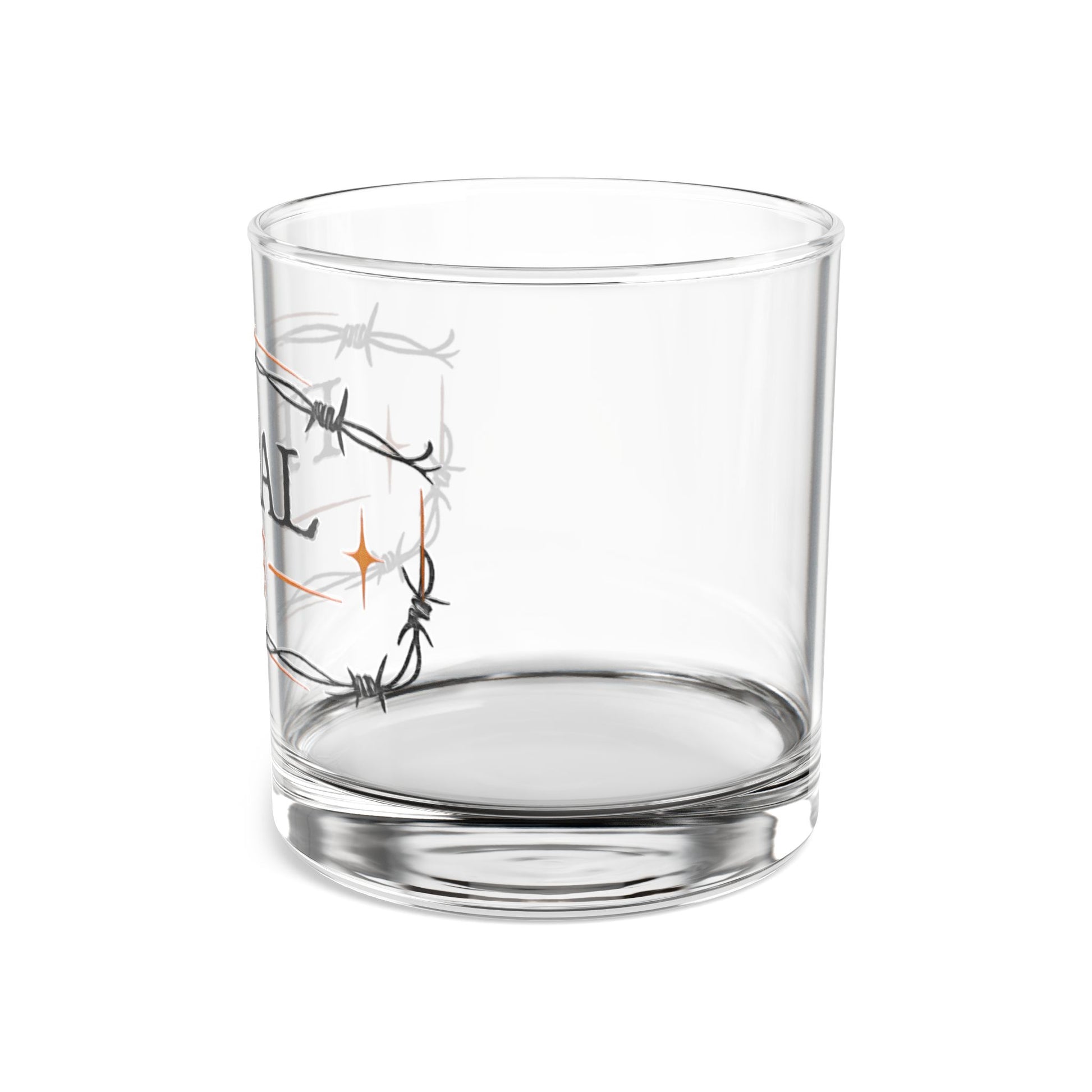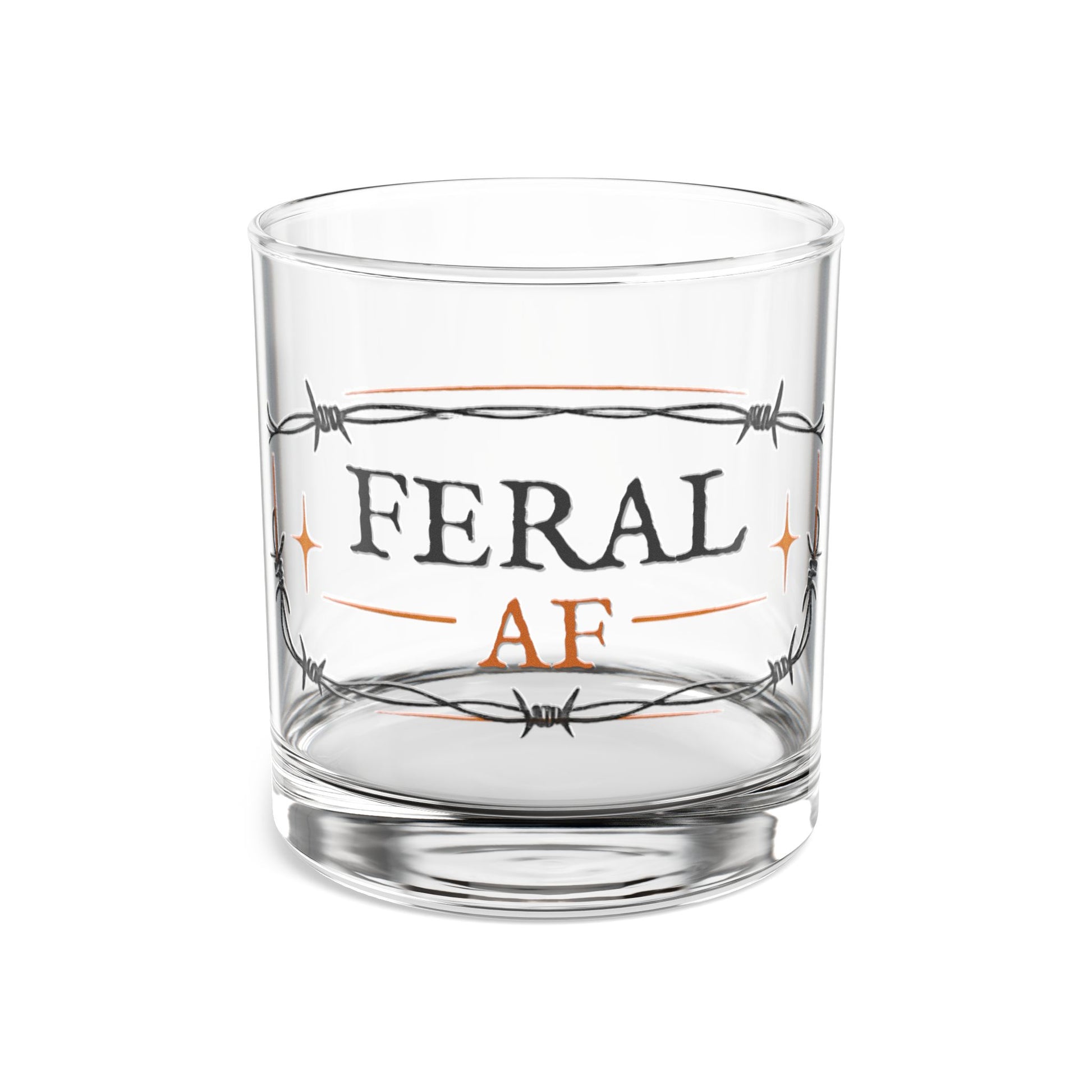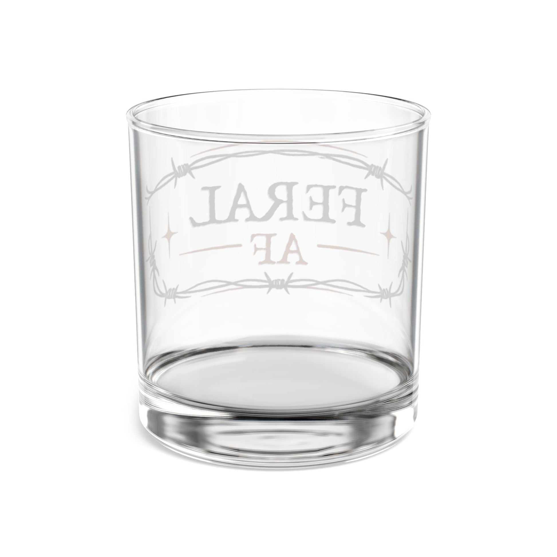 Rocks Glass – “FERAL AF” Barbed Wire Whiskey Glass, 10 oz